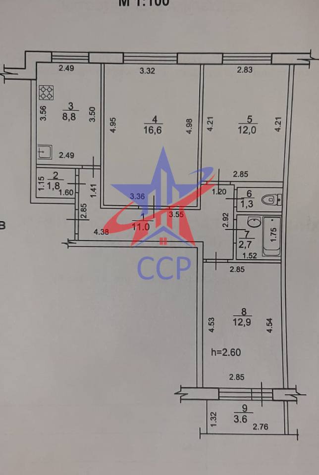 | Площадь кухни: | 9 м2 |